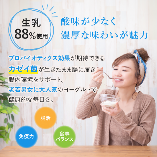 最初はもっちり、まぜるととろ〜り、おやつ感覚でいつの間にかペロリと食べちゃう人が続出中。バイオティクス効果も期待できるカゼイ菌が生きたまま腸内環境をサポートします。