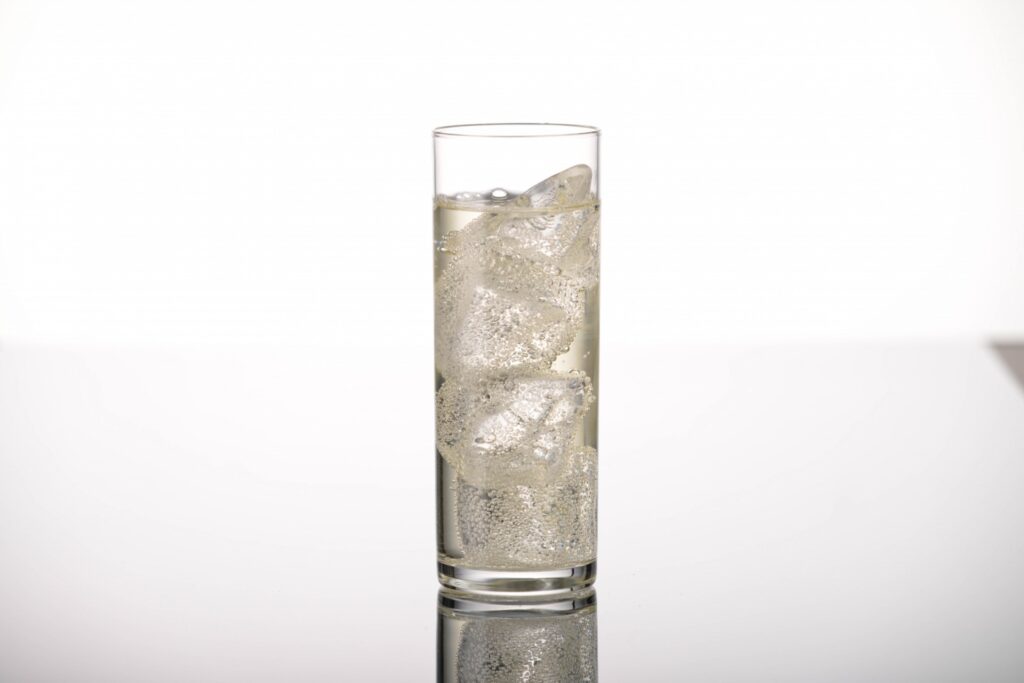 おいしく作るコツは、グラス、焼酎、ソーダをあらかじめよく冷やしておくこと。氷を入れたグラスに焼酎を注ぎ、冷えたソーダを「焼酎1:炭酸水3」の割合で優しく注ぎます。